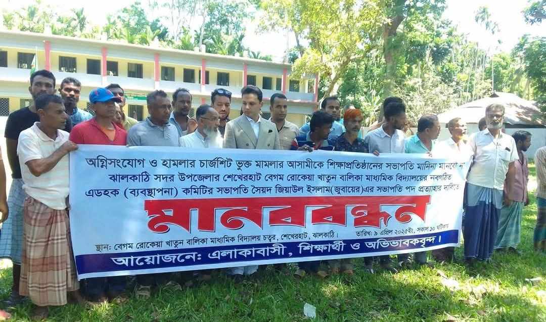 ঝালকাঠিতে বিদ্যালয়ের নবগঠিত এডহক কমিটির সভাপতির অপসারন দাবিতে মানববন্ধন