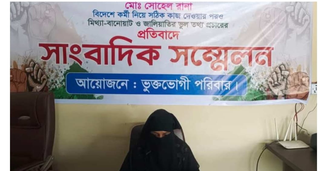 বিষয়টি সম্পর্কে তাদের অবস্থান পরিষ্কার করতে সোহেল রানার পরিবারের পক্ষ থেকে সংবাদ সম্মেলনের আয়োজন করা হয়। শনিবার (১৯ এপ্রিল) দুপুরে ভবেরচর বাস বাসস্ট্যান্ড এলাকায় আয়োজিত এই সংবাদ সম্মেলনে বক্তব্য রাখেন প্রবাসী সোহেল রানার স্ত্রী ফারজানা আক্তার। এসময় তিনি বলেন, ‘ আমার স্বামী সোহেল রানা দীর্ঘ চার বছর ধরে সৌদি আরবে একটি কোম্পানিতে চাকরি করছেন। আমাদের পাশের বড় রায়পাড়া গ্রামের মাসুদ এবং রিফাত নামে দুইজন ছেলে আমার স্বামীকে অনুরোধ করে তাদেরকে সৌদি আরব নিয়ে যাওয়ার জন্য। প্রথমে তিনি তাদেরকে না করে দেন তবে পরবর্তীতে তাদের অনুরোধে তিনি রাজি হন। সৌদি আরব যাওয়া এবং ভালো কোম্পানিতে চাকরির ব্যবস্থা করে দেওয়ার চুক্তিতে ছয় লক্ষ টাকা করে তাদের কাছ থেকে আদায় করা হয়। তারা স্বেচ্ছায় সেই টাকা পরিশোধ করে গত বছরের ডিসেম্বরে সৌদি আরব যান এবং ভালো কোম্পানিতে তাদের চাহিদার মত বেতনে চাকরি পান। চাকরি পাওয়ার পর তারা আমার স্বামীকে ধন্যবাদ পর্যন্ত জানায়। কিন্তু গত জানুয়ারি মাস থেকে তাদের পরিবারের সদস্যরা দাবি করতে থাকে তাদের কাছ থেকে ২ লক্ষ টাকা করে বেশি আদায় করা হয়েছে এবং সেই টাকা তাদের ফিরিয়ে দিতে হবে। সাম্প্রতিক এসব বিষয় নিয়ে আমাদের পরিবারের বিরুদ্ধে নানা মিথ্যা তথ্য দিয়ে তথাকথিত অনলাইন পোর্টাল এবং ফেসবুক পেজে পোস্ট করা হচ্ছে। এ ঘটনায় আমরা বিব্রত। বিষয়টি আমরা গজারিয়া থানা পুলিশকে জানিয়েছি। আমি এই ঘটনার প্রতিবাদ জানাই এবং দোষীদের শাস্তি দাবি করছি’।