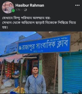 হাসিবুর রহমান বলেন,“দীর্ঘদিন রাজাপুর সাংবাদিক ক্লাবের সঙ্গে যুক্ত ছিলাম। কিন্তু বর্তমানে জাতীয় সাংবাদিক সংস্থার কার্যক্রম সম্প্রসারণের লক্ষ্যে আমাকে আরও বৃহৎ পরিসরে কাজ করতে হচ্ছে। এই গুরুত্বপূর্ণ দায়িত্ব যথাযথভাবে পালনের স্বার্থে আমি অন্যান্য দায়িত্ব থেকে সরে দাঁড়াচ্ছি। সে কারণে রাজাপুর সাংবাদিক ক্লাবের সদস্যপদ থেকে স্বেচ্ছায় পদত্যাগ করেছি।”