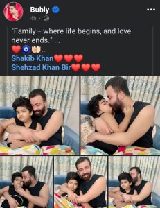 আজ (২৭ মে) দুপুর ২টা ৫৪ মিনিটে চিত্রনায়িকা বুবলী তাঁর পুত্র শেহজাদ খান বীর ও ছেলের বাবা মেগাস্টার শাকিব খানের আদুরে সময় কাটানোর কিছু ছবি পোষ্ট দিয়ে ক্যাপশনে লেখেন, পরিবার, যেখানে জীবনের শুরু, এবং ভালবাসার শেষ নেই।