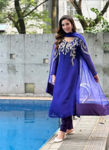 মিমের ঈদ, নীল পোশাকে ছড়ালেন মুগ্ধতা