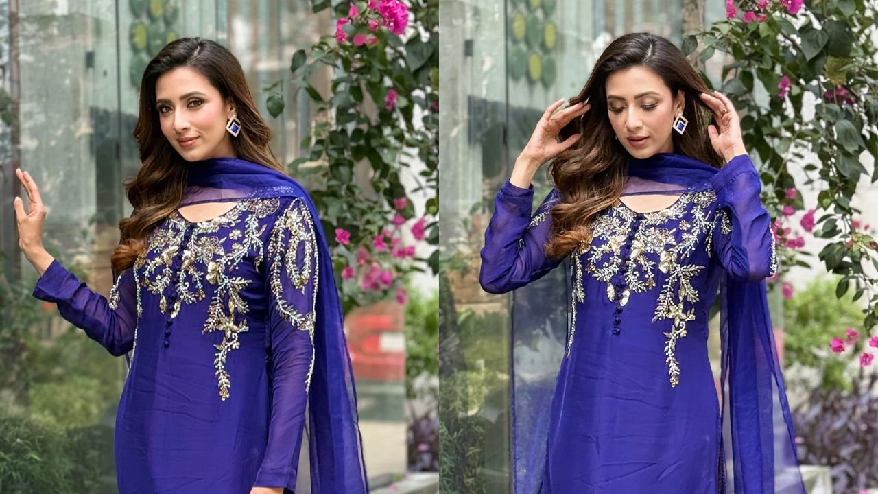 মিমের ঈদ, নীল পোশাকে ছড়ালেন মুগ্ধতা